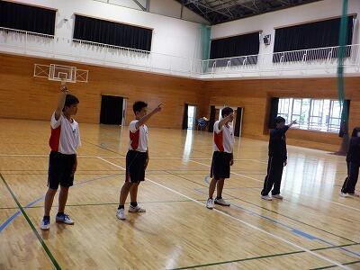 まずは4時間目、前期課程の授業です。ストレッチで体をほぐした後、その場足踏み、サイドステップなどの簡単な動きを教えてもらいました。全員上手にできたところで、次は上半身の振り付けを加えます。すんなり踊れる子、ちょっと戸惑ってしまう子、いろいろでしたが、だんだんと緊張もとけ、みんな笑顔で踊っていました。
