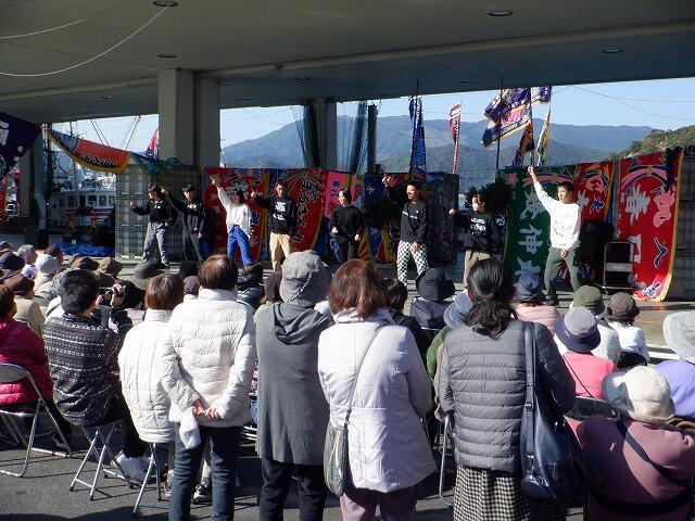 お昼を離島センターでいただき、午後のステージ。会場を水揚げ場にうつし、前期は午前と同じダンス、後期はヒップホップダンスを披露しました。ここでも大きな拍手に包まれ、大満足の子ども達でした。