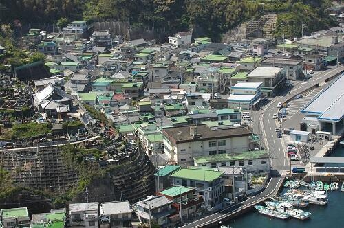 島浦(しまうら)は宮崎県延岡市沖にあります。延岡市浦城町から北東へ約6㎞、高速艇なら約10分の距離です。現在の町名は「延岡市島浦町」、地元の人のことは親しみをこめて「しまんだ」と呼びます。昔から漁業が盛んな島で、「いわしの舞う島」と呼ばれたほどです。