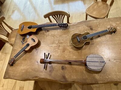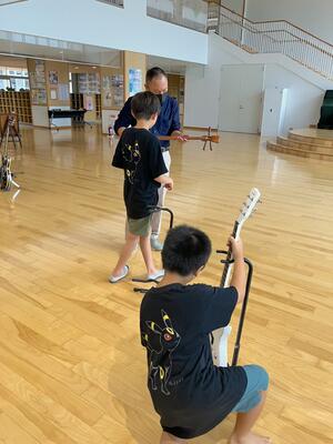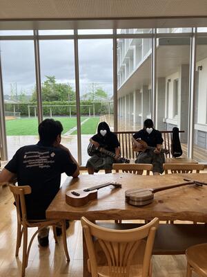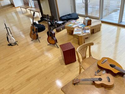 K先生が私物の色々な種類のギターやウクレレ、三線、打楽器のカホンなどを持ってきてくださり、誰でも自由に触って弾いていいよー!と準備していると、放課後の子どもたちが集まってきて興味を持って触ってくれます。音が鳴ると「何してるのかな?」って他の子も先生も集まってきます。中には自分でギターを練習していてしっかり弾ける子や、ちょっとやってたことがあるんですよーと弾いてくれる先生も!カッコイイ!!