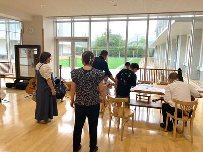 今年度の初回はMIDORIBA vol.10「ギターと仲良くなってみよう!」と題して7月18日(金)16時半〜18時に木城学園エントランスホールにて行いました。
