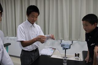 次に、ホタルの生態について説明されました。最近ホタルが減少していることを学園生に考えさせました。「川の汚れ(ごみ・家庭からの洗剤、とぎ汁等)」「温暖化」「木が切られる」「あかり」「田んぼからの農薬」があがりました。