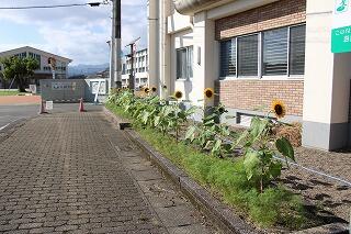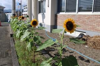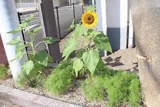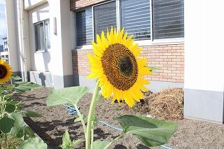 ヒマワリも鮮やかな色で大輪の花を咲かせています。また、コスモスもヒマワリの根元で順調に育っています!これからの生長が楽しみです。