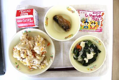 今日の献立は、ちらしずし、いわしのうめみそに、すまし汁です。
