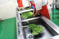 給食の野菜は必ず3回洗っています。虫や枯れ葉、傷んでいる部分などないか、確認しています。
