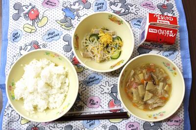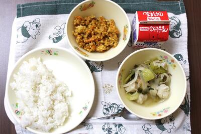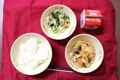 親子丼は子ども達の好きな献立のひとつです。残さず食べて、「おかわり!」の声が聞こえてきそうです。