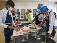 8年生の家庭科で、調理実習を行いました。(1組は11月9日、2組は11月12日に実施)テーマは「肉料理」・・・豚肉のしょうが焼きとつけあわせでピーマンの油炒めをつくりました。同じレシピでつくったはずですが、焼き加減や下味をつける時間などで、各班ちがいがでたようです。