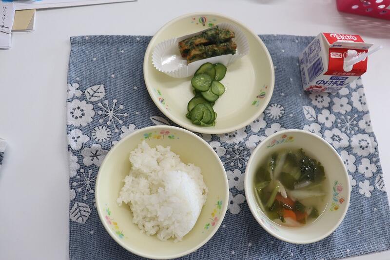 今日の給食(10月18日) 投稿日時 : 2024/10/18 学校管理者 今日の献立は、ごはん・団子汁・ちくわの磯辺揚げ・ゆできゅうりです。 今日は、遠足(1~4年)や宿泊学習(5年)で、6~9年生のみの給食でした。いつもより作る量が少ない分、「ちくわの磯辺揚げ」は、時間や手間のかかる手作りだそうです。 9年1組です。いただきます! {{options.likeCount}} {{options.likeCount}}