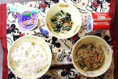 今日の献立は、ごはん・カレー肉じゃが・五色和えです。