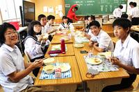 今日は、遠足(1~4年)や宿泊学習(5年)で、6~9年生のみの給食でした。いつもより作る量が少ない分、「ちくわの磯辺揚げ」は、時間や手間のかかる手作りだそうです。