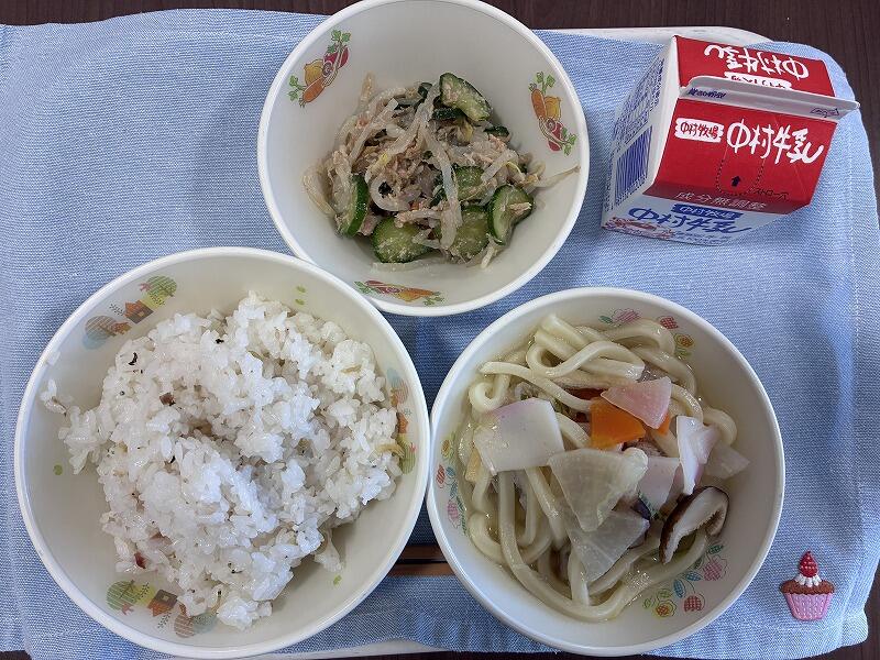 今日の給食は、牛乳、うめちりごはん、煮込みうどん、ごま酢和えでした。まぜごはんがメニューにあるとウキウキしてしまいます。今回は名前の通り梅とちりめんが入っていました。梅とちりめんの塩味と食感で2度楽しませもらえるまぜごはんです。煮込みうどんも具がたくさん入っていて、色とりどりで目にも楽しませてくれるメニューです。そして、ごま酢和えもさっぱりとしていて、具のツナと相性も良く、食が進みました。まだまだ寒い日が続きますので、煮込みうどんのような、あったかメニューでこの寒さをのりきりたいものですね。