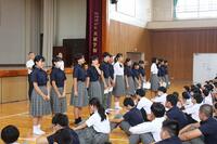 今日のグリーンタイムは学園生集会が行われました。各委員会からの活動の説明でした。執行部からは、ペットボトル集めについての説明が行われました。