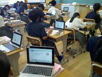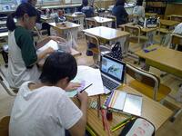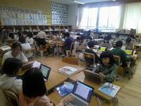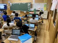 日差しがまだまだ強いですが、学園生は遠くから登校していました。児童生徒玄関前では、6年2組があいさつ運動を元気よくしていました!!1時間目、1年生がタブレットをもって写真を撮っていました。