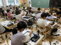 英語の授業では、教頭先生も一緒に入り楽しく学んでいました!!社会科の授業でも真剣です!!