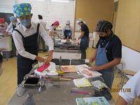 8年生の家庭科で、調理実習を行いました。(1組は11月9日、2組は11月12日に実施)テーマは「肉料理」・・・豚肉のしょうが焼きとつけあわせでピーマンの油炒めをつくりました。同じレシピでつくったはずですが、焼き加減や下味をつける時間などで、各班ちがいがでたようです。