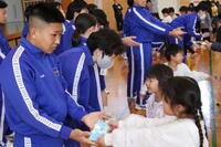 午前の部では、全校児童生徒全員で児童生徒会が考えたジェスチャーゲームを行いました。また、1~8年生それぞれの学年から9年生への感謝を歌や踊りで伝えました。