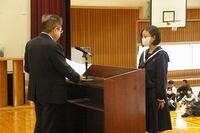 令和6年3月26日(火)木城町立みどりの杜木城学園 第1回修了式が行われました。各ステージ代表(4年生、7年生、8年生)に校長先生から修了証が渡されて、校長先生からは、今年1年間のそれぞれの学年・学級での全校生徒の頑張りに対して鼓舞激励していただきました。