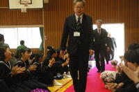 新入児氏名点呼では、学級担任から名前を呼ばれたら、体育館に響くほどの大きな声で「はい」と元気に返事ができました。