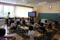 17日(水)2校時に第1ステージ(1~4年生)、3校時に第2ステージ(5~7年生)、4校時に第3ステージ(8,9年生)と分けて交通安全教室が行われました。第1ステージでは、グラウンドに描かれた横断歩道を左右しっかりと確認をして、手を挙げて横断する訓練を行いました。第2ステージ・第3ステージでは、高鍋警察署より講師に招いて、登下校で気を付けること、また自転車の点検や乗り方などの講話をいただきました。