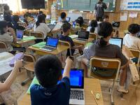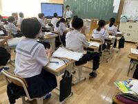 異学年交流の取組として、5年生と7年生で英語の授業を合同で行いました。今まで学習した単語や表現を使って、お互いに英語で自己紹介をしました。相手の目を見て、反応を確かめながら生き生きとコミュニケーションを図る姿は、5年生も7年生も素晴らしかったです。お互いに良い刺激をもらった5年生と7年生。今後さらに英語学習へのモチベーションが上がりそうです。