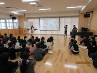 3年生がキータイムで学習した「木城町の自然」についての発表が2年生に向けて行われました。今まで学習してきたことがプレゼンテーションやかるたなどにまとめてあり、分かりやすい発表になっていました。2年生は、次年度の学習への意欲を高めることにもつながったのではないかと思います。3月には、3年生が作ったEM団子(水質を改善するために、EM菌を混ぜて発酵させた泥団子のこと)を2年生と一緒に川へ投入する活動も予定されています。