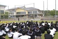 今月末から行われる、地区秋季体育大会の推戴式がありました。部活動ごとに大会に向けて抱負を発表しました。野球部主将が、選手を代表して宣誓を行いました。学校の代表として、力を尽くしてくれることを期待します。