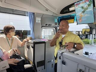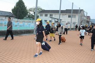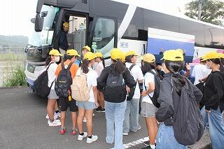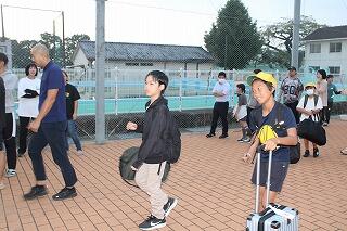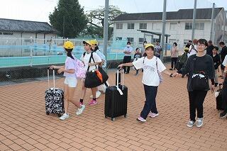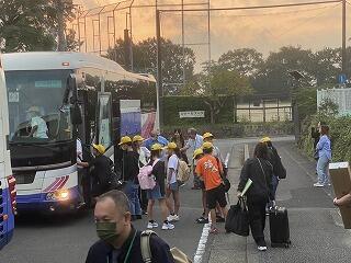 バッグやキャリーケースを引きながらバスに向かいました。全員最高のニコニコ笑顔で向かいました。中には、保護者と手をつなぎながら歩いている姿も見られ、心がポカポカしました。