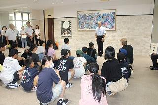 出発式では、半渡町長、恵利教育長から激励の温かいお言葉をいただきました。学園生代表の9年生は、研修に向かう意気込みについて、まずは英語で、その後日本語で発表しました。英語のスピーチに成長を感じました。最後に日本語で「私について来て下さい!」という力強いスピーチが素敵でした。