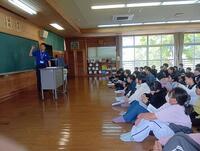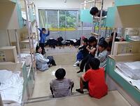 青島青少年自然の家に到着して、入所式の後にオリエンテーションが行われました。みんな真剣な表情で話を聞いていました。その後ベッドメーキングの練習をしました。