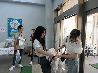 実は、この盛り上がりの一端を8・9年生28名が担ってくれました。27日(金)は会場の前日準備を行いました。28日(土)29日(日)は、会場でうちわや靴を入れる袋、パンフレットを配布してくれました。全ての学園生が、笑顔で来場者に対応していました。学園生からもらった方々は、自然と笑みがこぼれていて、素晴らしい風景でした。
