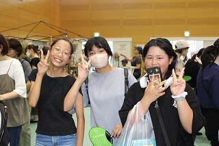 また、ボランティア隊以外にも、たくさんの学園生が「ここkonマルシェ」にお客として参加していました。友達同士で仲良くお買い物をしていました。カメラを向けると、最高の笑顔で応えてくれました。