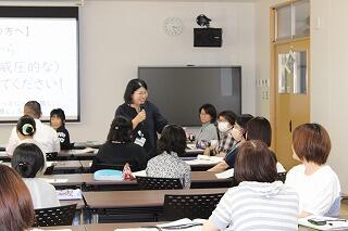 また上手な聴き方について、ロールプレイも行いました。二人組を作り、話し役と聴き役に別れました。ただし、聴き役が「えらそうな(威圧的な)態度で聞く」「関わりの少ない(拒否的な)態度で聞く」という役でした。この1週間で楽しかったことを話すのですが、聴き役が前述した態度なので、とても嫌な気持ちで話すことになることを体験しました。
