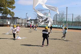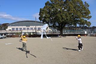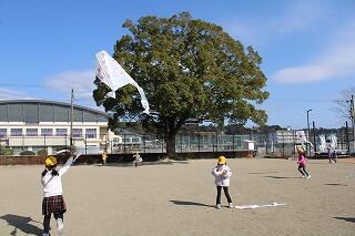 第1学年の生活科の学習で「冬を楽しもう」という単元があります。これまで、冬遊び等を中心に調べてきました。その中で、「凧づくり」を行いました。各自、凧に絵を描きオリジナルの凧を作りました。