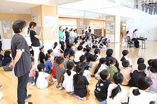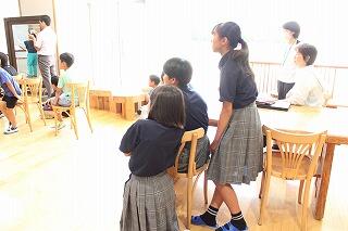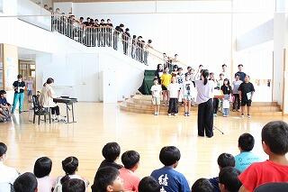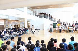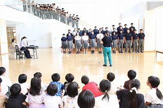 まず、4~6年生が1曲披露しました。透き通った声で素晴らしいハーモニーを奏でてくれました。伴走している柳田先生の姿を見て「すごい!」と数名の学園生が声に出していました。