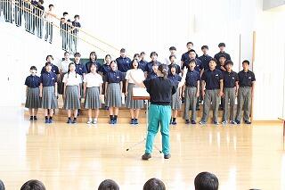 最後に、7~9年生が2曲披露しました。男性の低音と女性の高音の声にうっとり聴き入ってしまいました。学園生も体が前のめりになり、集中して聴いていました。本当に感動しました!