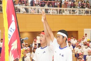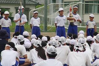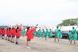 午後の部は、3・4年生、7~9年生による「福智王」で幕を開けました。地域に伝わる素晴らしい伝統文化を迫力のある演技で表現してくれました。その後、徒競争、リレーを中心としたプログラムでした。最後まで諦めることなく走る姿に感動しました。応援も含めて、両団ともにこれまでの練習の成果を十分に発揮することができました。そして、競技の部では赤団優勝、応援の部では白団優勝で幕を閉じました。