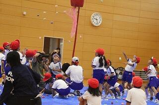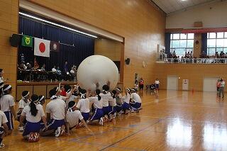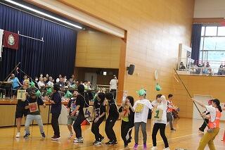 当日の朝、微妙な天気で判断に迷いましたが、午前中、リバリス(木城町体育館)、午後グラウンドで行うことにしました。朝の6時に花火が上がったときは、「よし、やるぞ!」という意欲が湧き上がってきました。これは、他の職員も同じで、道具運びを朝から頑張りました。