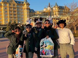東京ディズニーランドでは、みんな大はしゃぎ!カチューシャをしたりかぶり物をかぶったり、ミッキーサングラスをかけたりと、それぞれ楽しみました。シンデレラ城をバックにした写真はとても綺麗でした。アトラクションを楽しむだけでなく、ショッピングも楽しみました。かわいいディズニー買い物袋の中に、たくさんのお土産を買っていました。今日の夜を楽しみにしていてください!