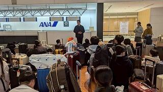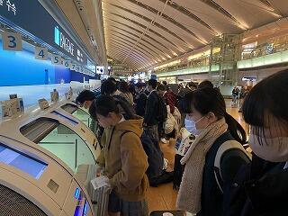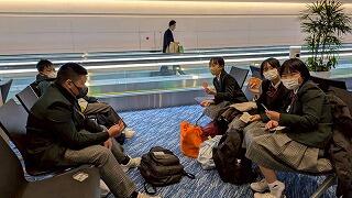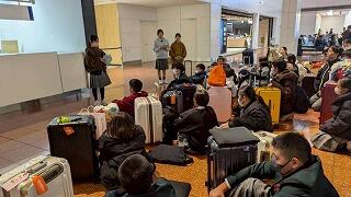 東京ディズニーランドの楽しい時間が終わると、羽田空港です。まず、解散式を行いました。校長先生や代表学園生が挨拶を行いました。解散式が終わり、セルフで手荷物を預け、保安検査場へ。出発まで1時間くらいありましたが、それぞれ修学旅行を振り返っていました。飛行機の出発が予定より少し遅れ、19時10分発になりました。