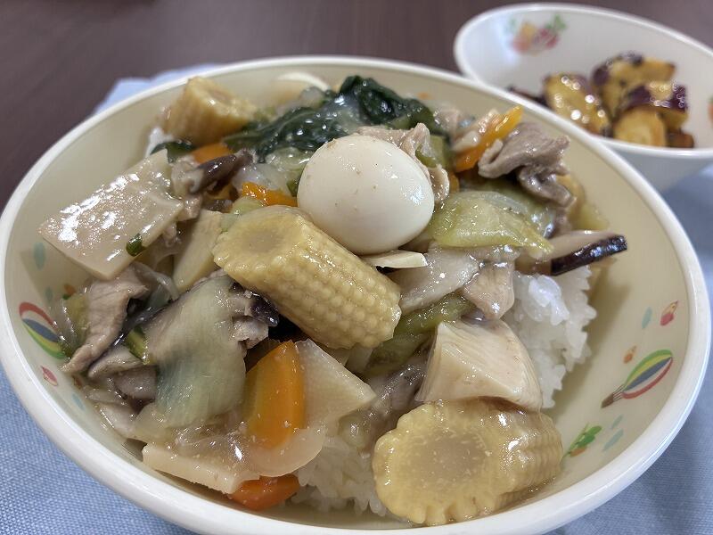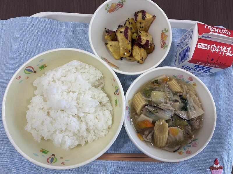 今日の給食は、牛乳、ごはん、中華丼の具、大学芋でした。本日12月8日は有機農業の日です。「有機農業の推進に関する法律」が成立してから10周年を記念して、2016年に、12月8日が記念日「有機農法の日」として制定されました。それにちなんで、本日は有機栽培でつくられた木城町のお米とさつまいもが使われています。有機農業とは、科学的に合成された肥料や農薬を使わないこと、遺伝子組み換え技術を使用しないことを基本として、農業生産に関わる環境への負担をできる限り少なくした農業の方法のことです。そんなお米を中華丼としてモリモリ食べて元気になれました。また、大学芋も外カリ中ホクで甘くておいしかったです。