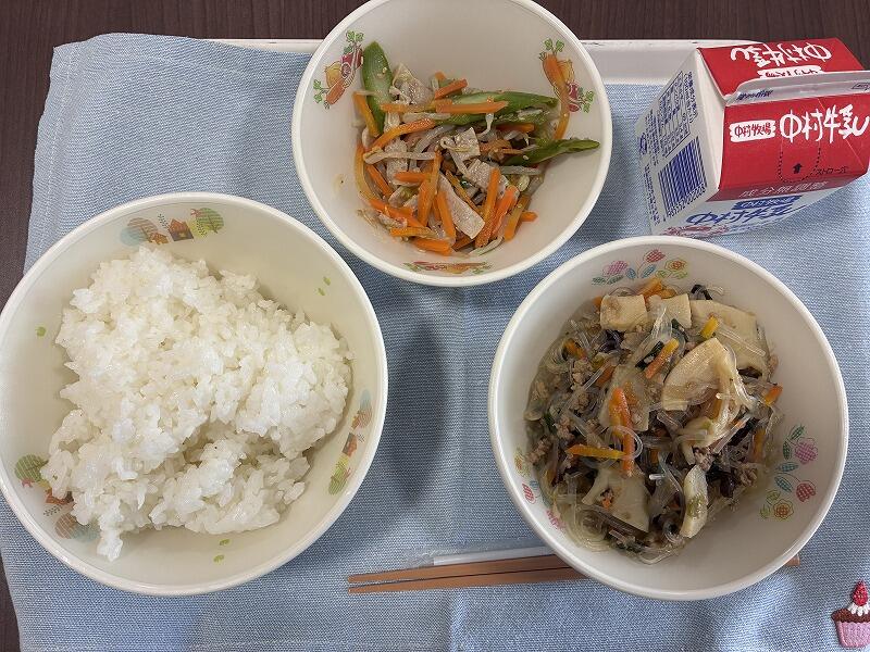 今日の給食は、牛乳、ごはん、マーボー春雨、アスパラのナムルでした。ナムルと言えば、もやしが定番ですが、本日はもやし、にんじんに加えてアスパラも入っていました。さらにハムも入っていて、とても美味しかったです。ハムとアスパラの組み合わせは抜群ですので、これをナムルにするとボリューム感のある一品になります。ぜひご家庭でも試してみてください。