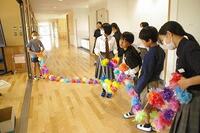 本校の特色でもある、1~9年生までが縦割りで一緒に清掃を行う「ふれあい清掃」の良さをいかして、初めての清掃で何もわからない様子の1年生に9年生が優しく教えてあげる場面も見られました。