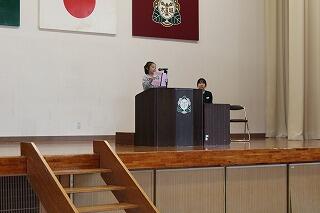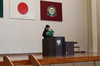 学園生代表2名(1年、8年)の学園生が、作文を発表しました。2名ともこの1年間を振り返り自分の成長したところを堂々と発表してくれました。