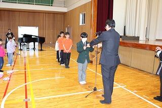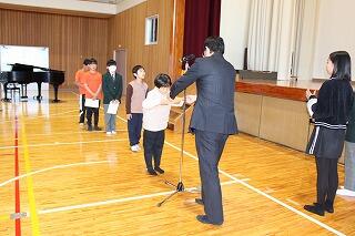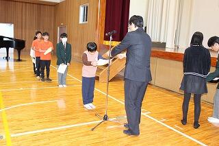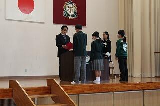 次に、第Ⅰステージを代表して4年生が、第Ⅱステージを代表して7年生が、第Ⅲステージを代表して8年生が校長先生から、修了証を授与してもらいました。3名ともとても嬉しそうでした。