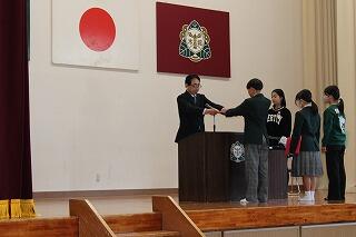式終了後に、表彰集会がありました。この1年間で多くの学園生が表彰されました。