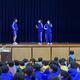 結団式 04/18 今日は、1校時に体育館で結団式があり、5月18日(日)開催予定の「運動会」に向けて、本格的にスタートしました。 まず、校長先生の話がありました。昨年度は雨のため、2日間開催でしたが、素晴らしい運動会でした。今年も団長、副団長さんを中心に頑張りましょう!という学園生に元気を与えるあたたかい話でした。 次に、運動会実行委員長の9年生「星居翔太さん」の話がありました。「自分も先輩のようにこんな舞台で輝いてみたいと思ったから」という実行委員長になった理由を述べました。そして、学園生全員に「1人1人が全力を出し、力を合わせて、記憶に残る運動会にしましょう!」という力強い言葉を2回呼びかけました。 次に、団の色決定を行いました。保体委員会が企画した「輪投げゲーム」を行い、点数の多い団から色が決定する封筒を選びました。輪投げゲームは、新聞紙で作ったリングを三角コーンにいれるものでした。なかなか入りませんでしたが、かなり盛り上がりました。最後は団長同士固い握手をしていました。団の色は次のように決定しました。 〇赤団(1-1、2-1、3-1、4-2、5-1、6-2、7-1、8-2、9-2) ...