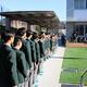 地区中学総体推戴式 2025/05/28 いよいよ5月31日(土)から、「西都児湯地区中学校総合体育大会」が始まります。今日は、その大会に向けて、5~9年生の学園生が集まり、推戴式を行いました。 まず、学園生代表が、参加者に向けてエールをおくりました。特に9年生に向けての熱いメッセージが心に残りました。 次に、各部活・クラブごとに決意表明がありました。ユニフォーム姿だったので、いつもとは違う雰囲気の学園生が新鮮でした。決意表明の中で感心したことは、どの部・クラブの代表者が、指導者や家族に対する感謝の気持ちを述べたことです!技術だけでなく、心も成長していることが嬉しくなりました! 次に、校長先生から学園生へのエールがおくられました。いつものように、校長先生の熱い思いを伝えられ、学園生が真剣な眼差しで話を聞き入っていました。 最後に、体育主任から応援する際の注意事項がありました。その中で、参加者も応援者もルールをしっかり守ることが話されました。 9年生にとっては最後の大会です。ぜひ、県大会を目指して頑張ってほしいです!日頃の練習の成果を発揮できるようにみなさんの熱い応援をよろしくお願いいたします。
