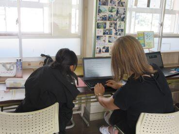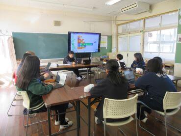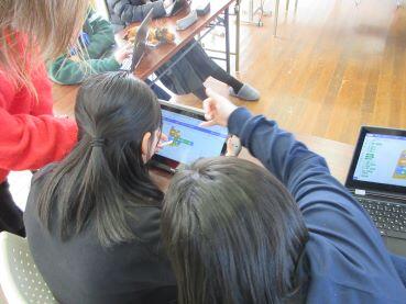 今日の芸術(技術)の時間はプログラミング学習です。分からない部分は、お互いに教え合いながら協力して学習に取り組みました。