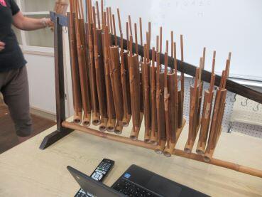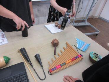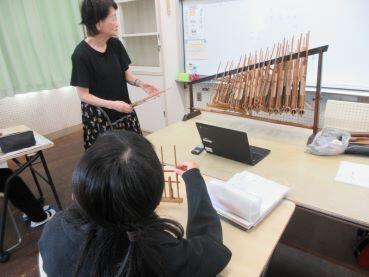 今日の音楽の時間には、珍しい楽器を使った演奏を行いました。特に、インドネシアの楽器。アンクルンを使った演奏に生徒たちも興味津々でした。