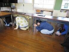 1 地震発生(想定~震度6強、M8.0)⇒シェイクアウト(机の下で揺れが収まるまで待機)